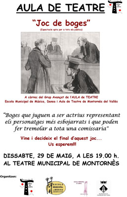 El Grup Avançat de l’Aula de Teatre presentarà aquesta tarda el muntatge Joc de boges. Es tracta d’una versió de l’obra Mort accidental d’un anarquista de Dario Fo.