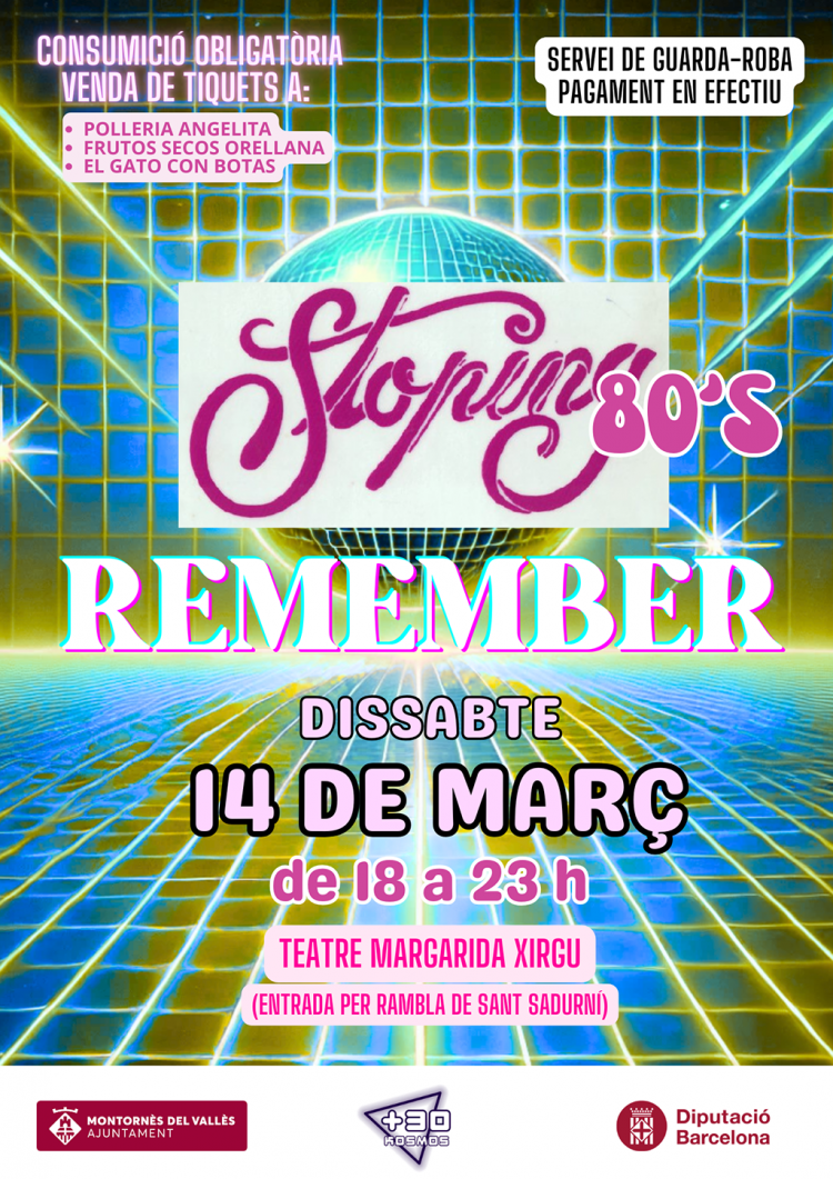 El Teatre Margarida Xirgu es transformarà per unes hores en l'antiga discoteca Stoping per recordar alguns dels èxits que sonaven a l'època dels 80.