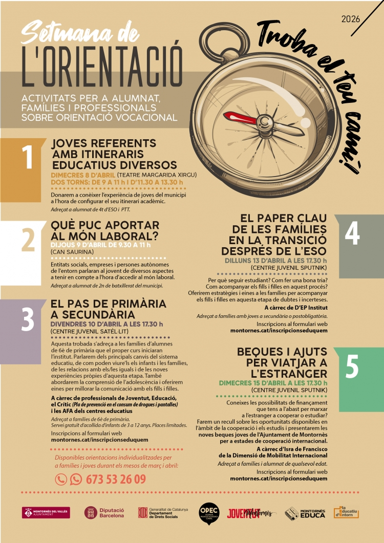 La Setmana de l'Orientació és una iniciativa dels departaments municipals d’Educació, Joventut i Ocupació, Promoció Econòmica i Comerç.