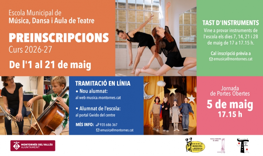 Entre l’1 i el 21 de maig romandrà obert el termini per seguir qualsevol dels cursos del centre. Per fer la preinscripció caldrà fer la sol·licitud al web musica.montornes.cat (per a l'alumnat nou) …