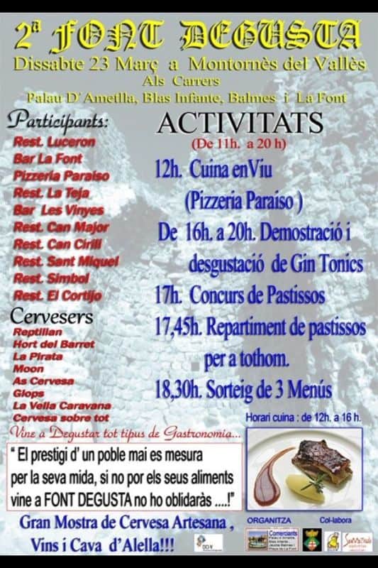 Una vintena d'establiments de restauració i cervesers del poble i de la comarca participen en la segona edició de la Font Degusta oferint degustacions de tota mena de tapes, plats i begudes.