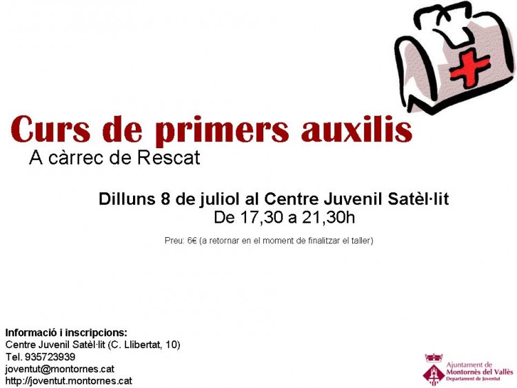 El Departament de Joventut proposa un taller monogràfic dedicat als primers auxilis a càrrec de Rescat. L'activitat s'adreça a joves a partir de 16 anys.