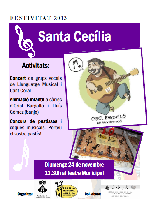 Un any més, l'Escola Municipal de Música, Dansa i Aula de Teatre proposa tot d'activitats musicals a l'entorn del dia de Santa Cecília, que se celebra el 22 de novembre.