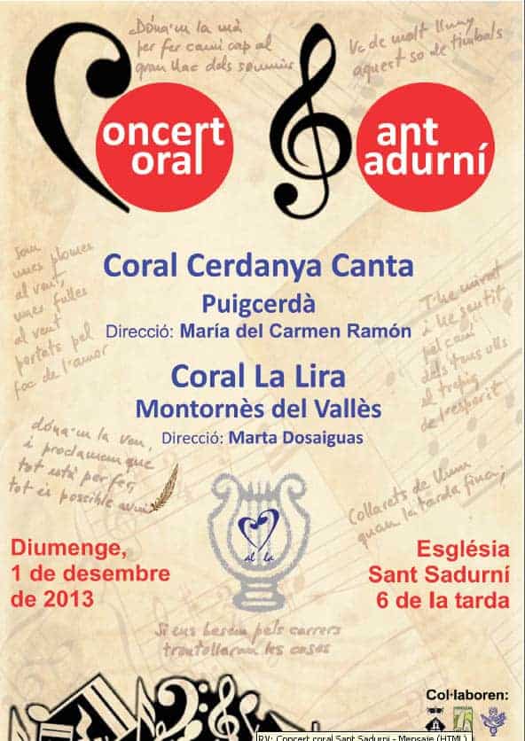 Hi intervindrà la Coral Cerdanya Canta de Puigcerdà dirigida per Maria del Carmen Ramón i la Coral La Lira de Montornès sota la direcció de Marta Dosaiguas.