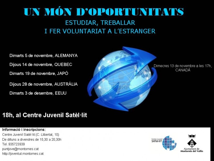 El Centre Juvenil Satèl·lit ha dedicat tot el mes de novembre, i aquest primera setmana de desembre, a fer xerrades que pretenen assessorar els joves per tal que marxin a l’estranger ben preparats i informats.