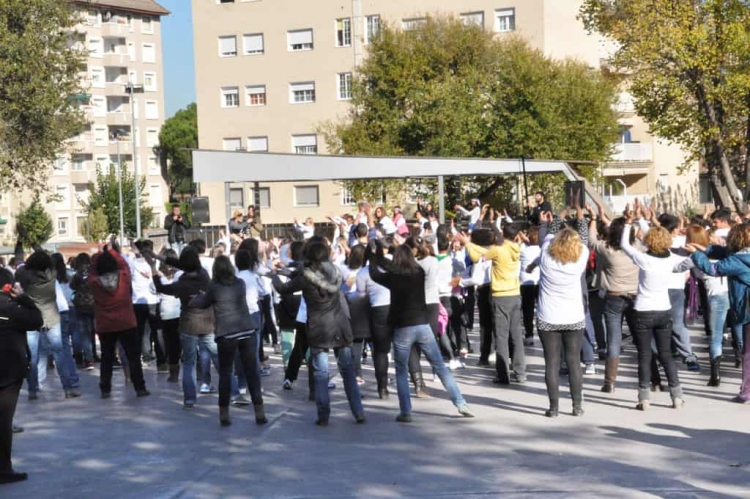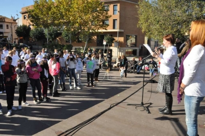 Després del flashmob solidari “Vine a ballar contra la violència. Trenca la cadena”, s’ha llegit el manifest institucional, enguany, a càrrec d’una usuària del Casal de la Gent Gran de Montornès Nord i d’una alumna de l’Institut Vinyes Velles