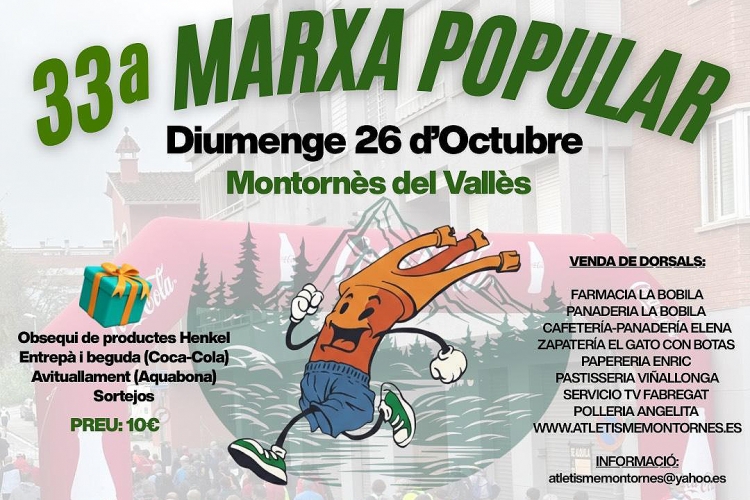 El Club Atletisme Montornès ja ho té tot a punt per a la Marxa Popular, una de les caminades més emblemàtiques del poble que enguany arriba a la 33a edició. Enguany es durà a terme el diumenge 26 d’octubre al matí.