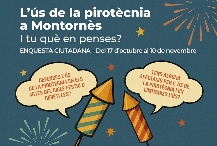 Aquest divendres s’ha posat en marxa una consulta ciutadana per recollir l’opinió del veïnat sobre l’ús de la pirotècnia a l’espai públic, especialment durant festes i celebracions. L’objectiu és conèixer com viu la ciutadania aquesta pràctica i trobar un equilibri que permeti mantenir les tradicions festives tot garantint la seguretat i el benestar de tothom.