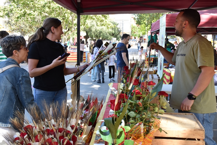 Durant tot el dia, i amb el vent ben present, centenars de persones han passat per la plaça de Pau Picasso per celebrar Sant Jordi a Montornès. L’espai ha acollit prop d’una trentena de parades, entre les quals de llibreries i floristeries que han venut llibres i roses, i d’entitats que han aprofitat la cita per donar a conèixer la seva activitat.