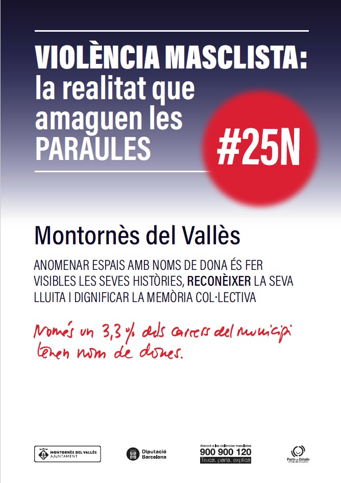 La campanya "Violència masclista: la realitat que amaguen les paraules" posa l’èmfasi en el llenguatge i en les definicions acadèmiques de les paraules ressaltant els micromasclismes que inclouen, i contraposant-hi la dura realitat de les dades, des de la perspectiva de la violència masclista. Els conceptes clau de la campanya del 2025 són Respecte, Reconeixement i Llibertat. Els del 2024 van ser Igualtat, Seguretat i Amor. La iniciativa tindrà continuïtat en els pròxims anys amb altres mots també vinculats a la quotidianitat.